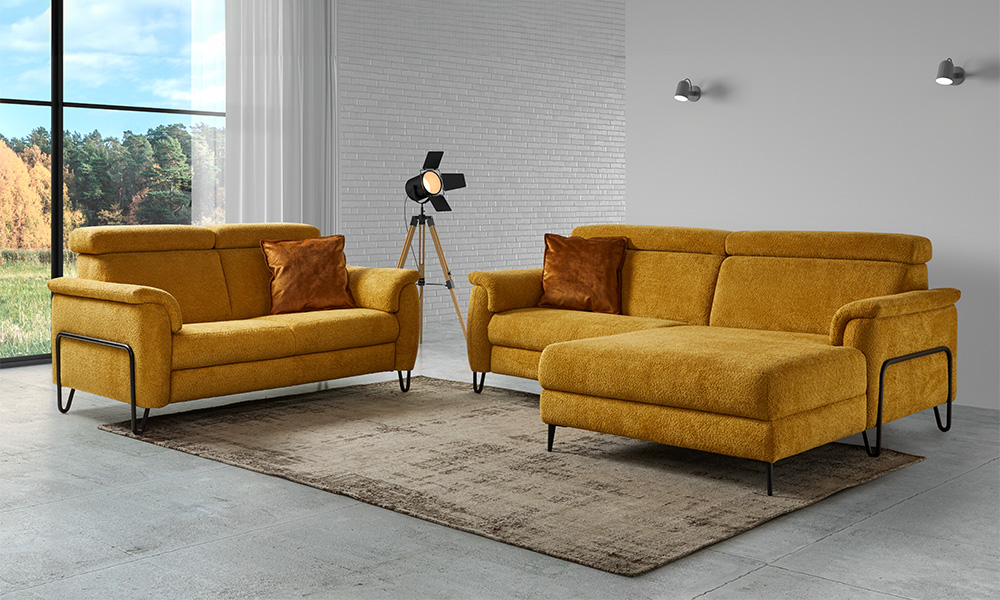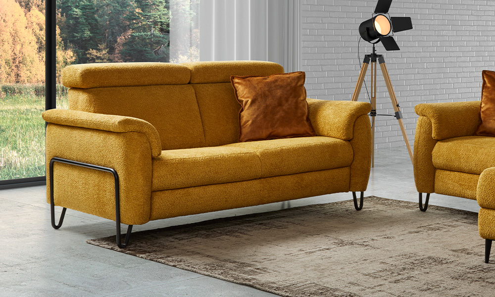 Carcasse hêtre et panneaux de particules. Suspension assise nosag, dossier sangles. Garnissage mousse polyuréthane assise 30 kg/m3. Dossier 17 kg/m3. Accoudoirs 20kg/m3. Pieds métal noir.